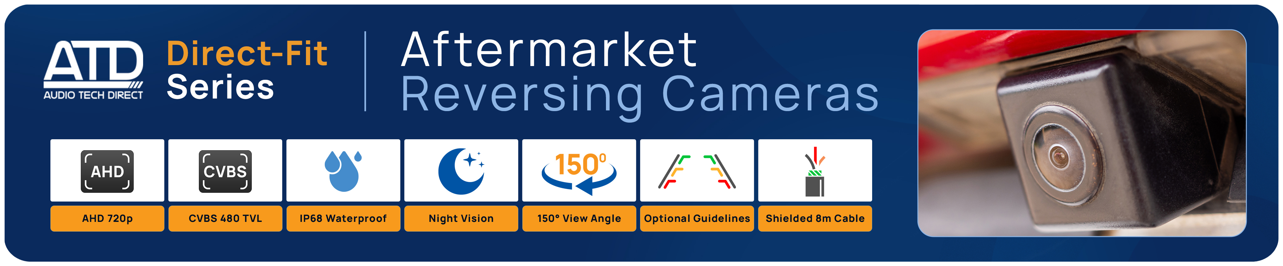 For over a decade the ATD Direct Fit Reverse Camera range has been the preferred choice of trade professionals, offering exceptional quality, seamless integration, and outstanding value. Designed to enhance vehicle safety and convenience, this camera provides superior image clarity and a wide field of view optimal for parking assistance.