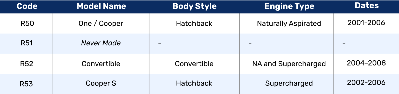 The Mini Cooper R50/R53, produced from 2001 to 2006, marked the rebirth of the MINI brand under BMW ownership. These models were the first generation of the "new MINI" and combined retro-inspired styling with modern engineering.